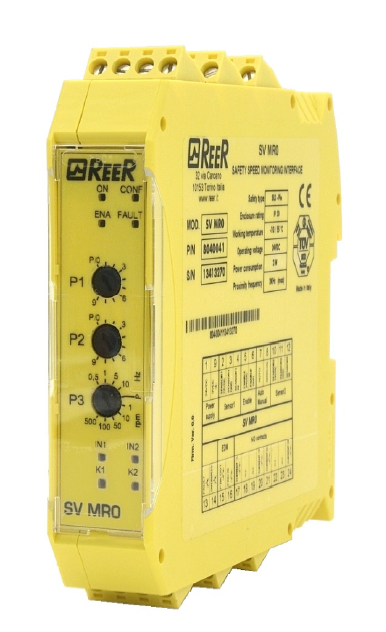 - detekce překročení maximální povolené rychlosti a detekce nulové rychlosti - manuální nebo automatický restart - vstup EDM pro monitoring externích kontaktů - povolovací vstup - 2 vstupy pro PNP proximity snímače - 3 voliče z čelní strany pro nastavení