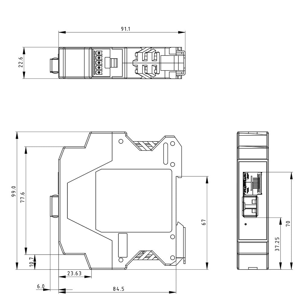 Průmyslový Gigabit SFP Media Converter. Průmyslové provedení, -40°C až +80°C, montáž na DIN lištu, napájení +5 až +30 V DC