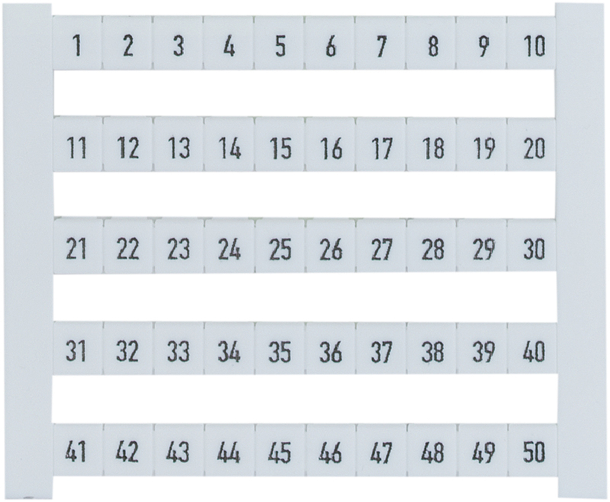 PSSu, terminal nameplates for base modules (dekafix), labelled with numbers 1..50, PU 10x 50 terminal nameplates, packed in neutral carton with marking sticker.