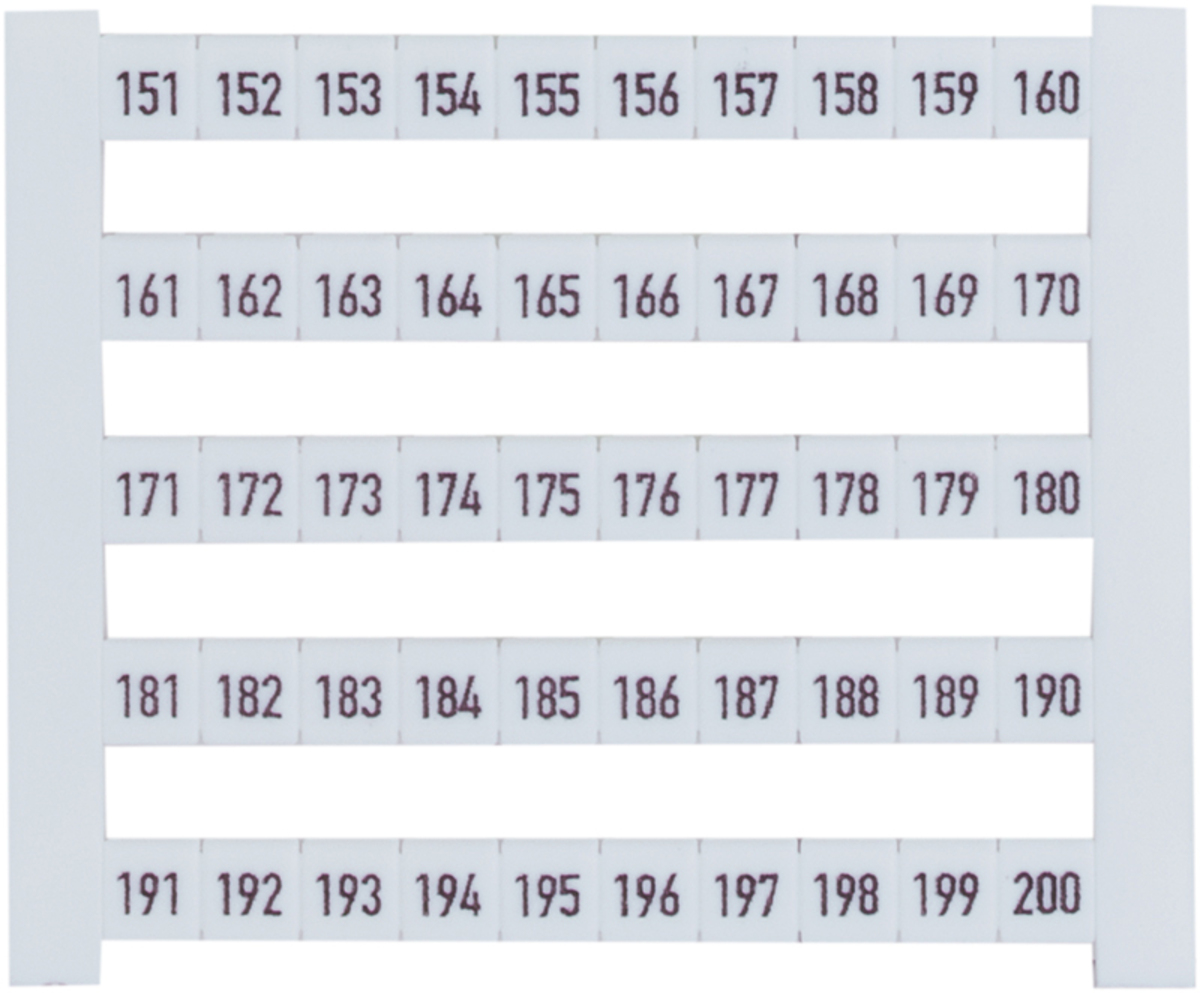 PSSu, terminal nameplates for base modules (dekafix), labelled with numbers 151..200, PU 10x 50 terminal nameplates, packed in neutral carton with marking sticker