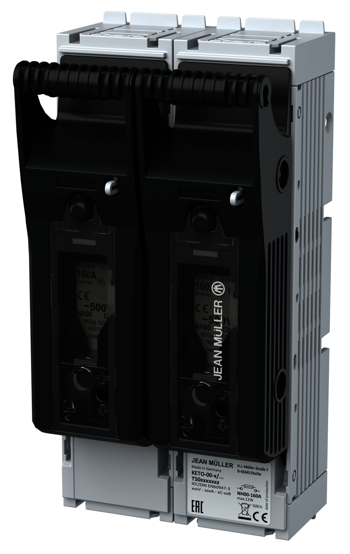 according to EN60947-3, size NH1 - 250A, 2pole for baseplate mounting with screw terminal M10 x 25 cable terminal at top and bottom side