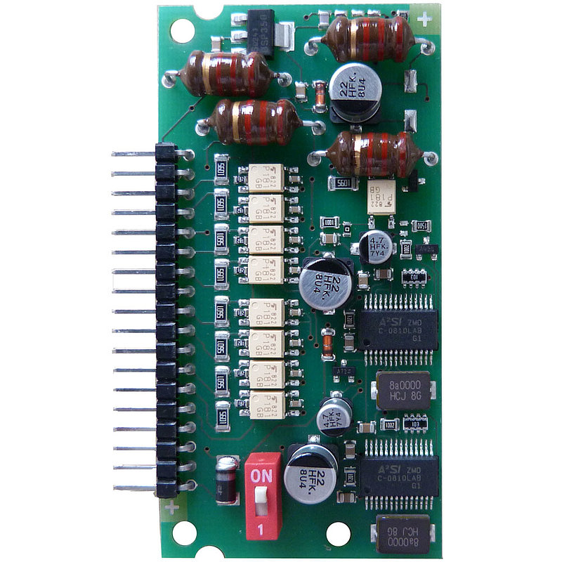 ASi PCB Module, 73 mm x 37,5 mm, 8 digital inputs, input voltage/sensor supply out of ASi, max. 180 mA for sensor supply, periphery connection via wiring pins, angled, ASi connection via wiring pins, angled, 2 AB addresses