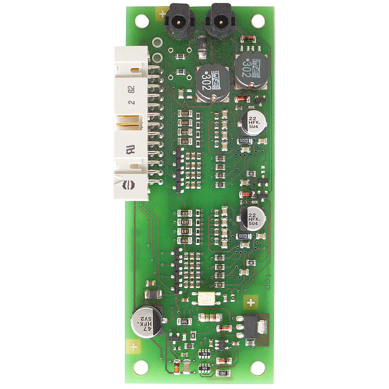 ASi PCB Module, 104 mm x 41 mm, 8 digital inputs, 8 digital outputs, input voltage/sensor supply out of ASi, output voltage/actuator supply out of ASi, max. 70 mA per output, periphery connection via wiring pins, angled, coated, LED, ASi connection via wiring pins, angled, 2 AB addresses