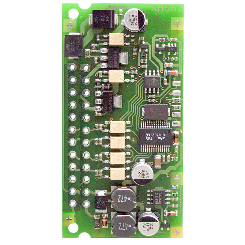 ASi Safety PCB Module, 73 mm x 37,5 mm, 1 x 2 channels safe input (SIL 3, cat. 4) for floating contacts, 2 digital outputs, input voltage/sensor supply out of ASi, output voltage/actuator supply out of AUX, periphery connection via solder lugs, LED, 1 single address