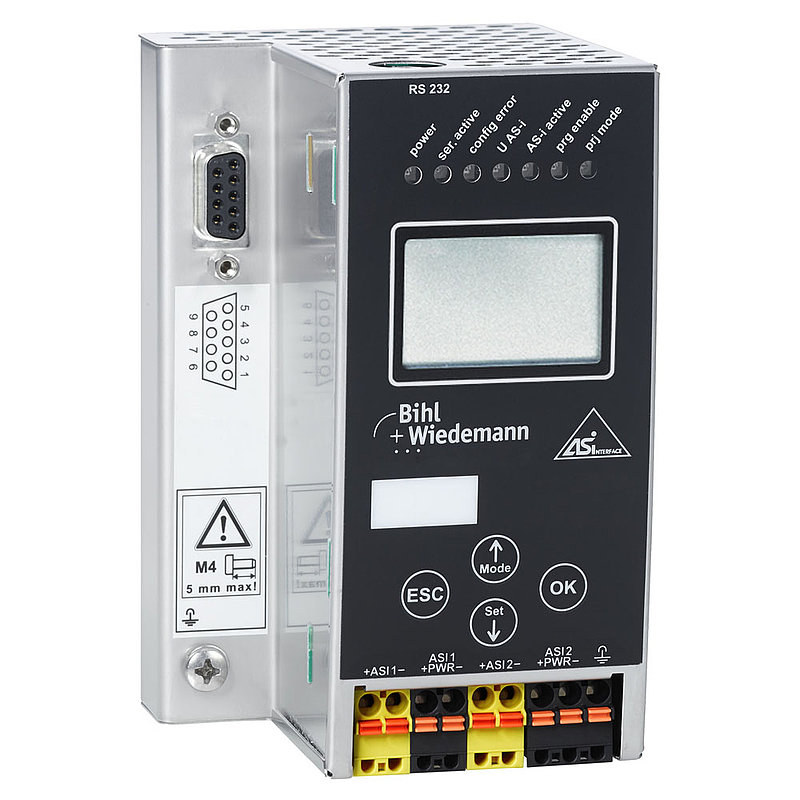 ASi-3 Modbus Gateway in Stainless Steel, 2 ASi masters, diagnostic and configuration via RS232 diagnostic interface, duplicate address recognition, ASi fault detector