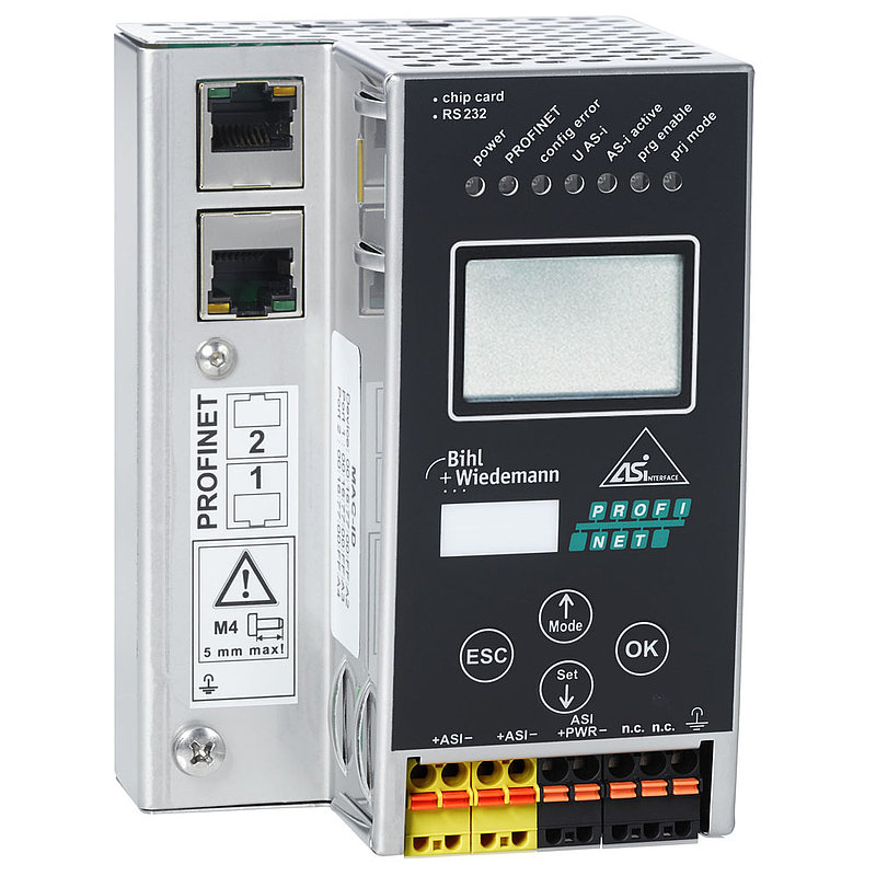 ASi-3 PROFINET Gateway in Stainless Steel, 1 ASi master, diagnostic and configuration via PROFINET or RS232 diagnostic interface, duplicate address recognition, ASi fault detector, programming in C optional náhrada BWU3848
