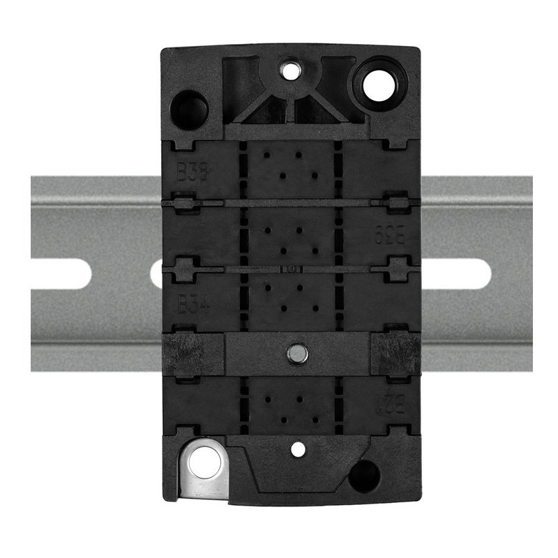 ASi Substructure Module in IP67 with connections for 2 x ASi and 2 x AUX profile cables, for 4-channel module in 45 mm-housing. Suitable for mounting on symmetrical DIN profile rail 35 mm.