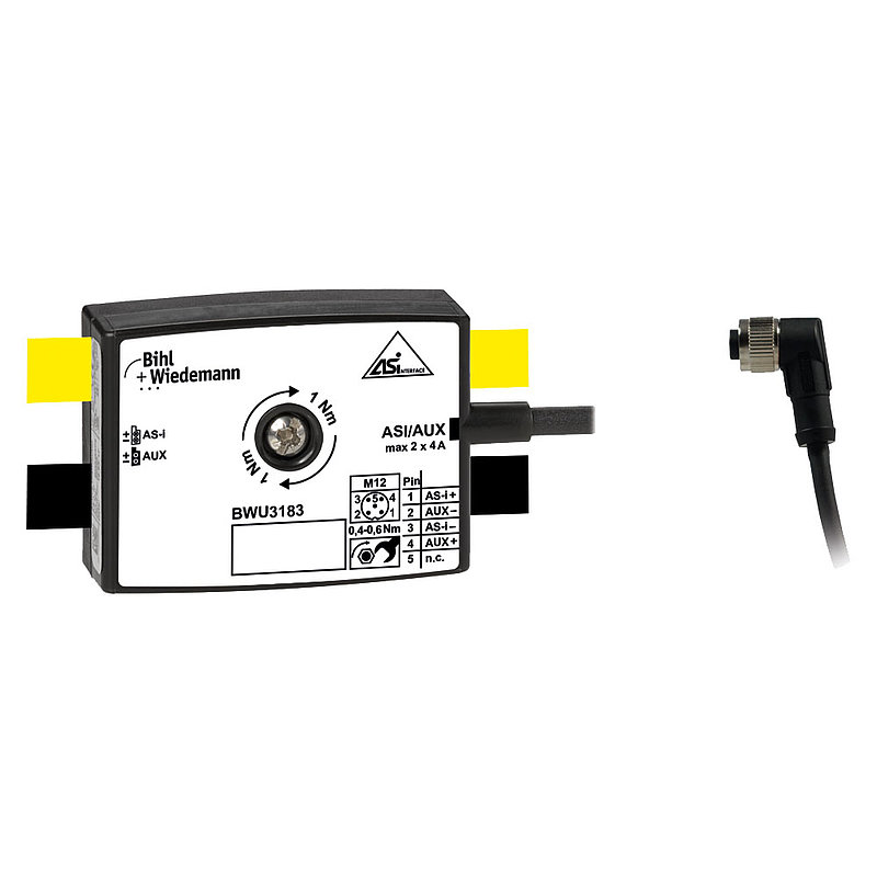 Bihl+Wiedemann BWU3183 Passive Distributor AS-i/AUX to 1 x M12 cable socket, angled, 5poles, depth
